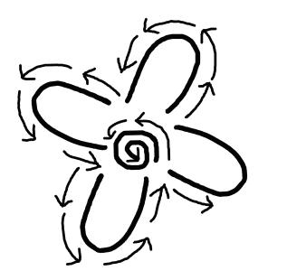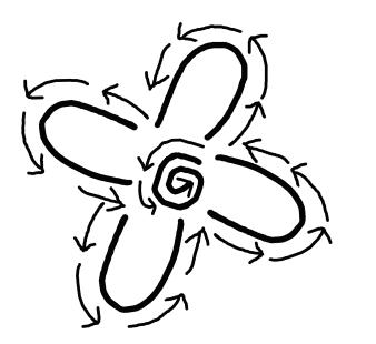 More doodling, more thinking, more nano breaks … Then a new shape. Four petals, one centre. The petals moving in and out of the centre.